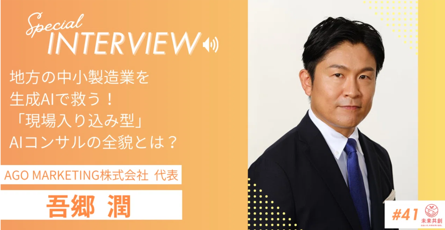 この度、AIと専門家の知見を活用したビジネスマッチングプラットフォーム「未来共創コミュニティ」(note)に、代表・吾郷潤のインタビュー記事を掲載いただきました。